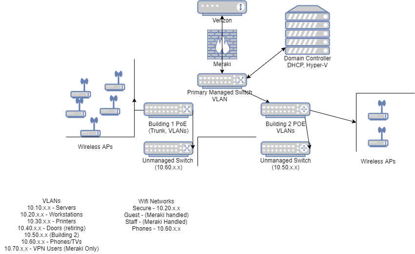 We call it auto 10 0 1 0 20 own gw fw internet 3x unifi ap ac pro 1x unifi outdoor 3 x netgear managable switches 5 vlans 4 5 only on switch 2 at the moment all ap s will plug into this switch 1 default 2 auto voip 3 auto video 4 wifi auto 5 wifi prop 2xssid lsa and ls guest.